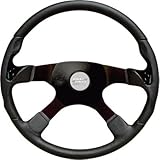The stealth Grant Products steering wheel Series offers 4-spoke leather hand stitched Italian look stylish and comfortable wearing. Diameter (in.): 17 3/4, Style: 4-branches, Frame Material: leather clad spoke wheels w / aluminum Cover Type: Leather, Color: Black